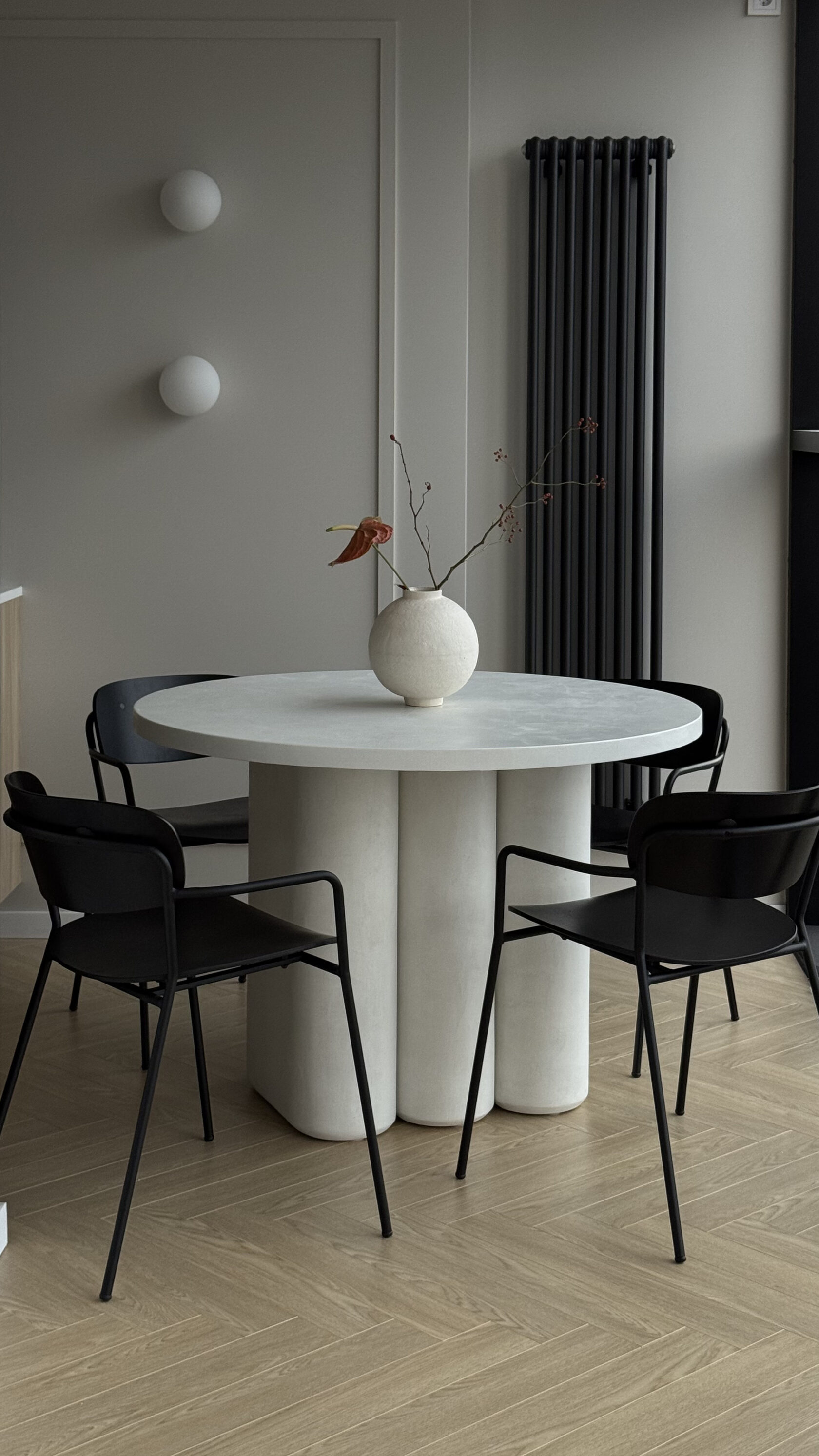 Комбинация бионических форм и бархатного узора микроцемента в столе Bionich. По своей структуре данное покрытие напоминает камень и объединяет идеально выверенные ровные линии с природной небрежностью, свойственной камню.